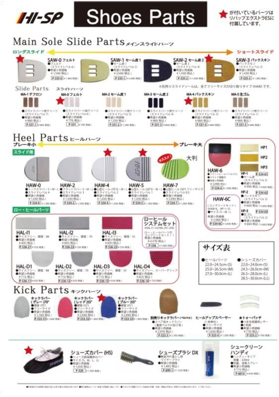 付属パーツ:スライドソール:SAW-0(フェルト)、SAW-3(バックスキン)