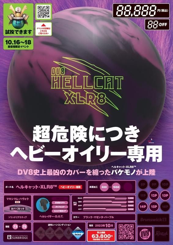 オイルの多い朝一などのコンディションがどうしても苦手な方や、とにかく曲がりが欲しいボウラーには、この「ヘルキャット・XLR8™」を強くお勧めいたします。