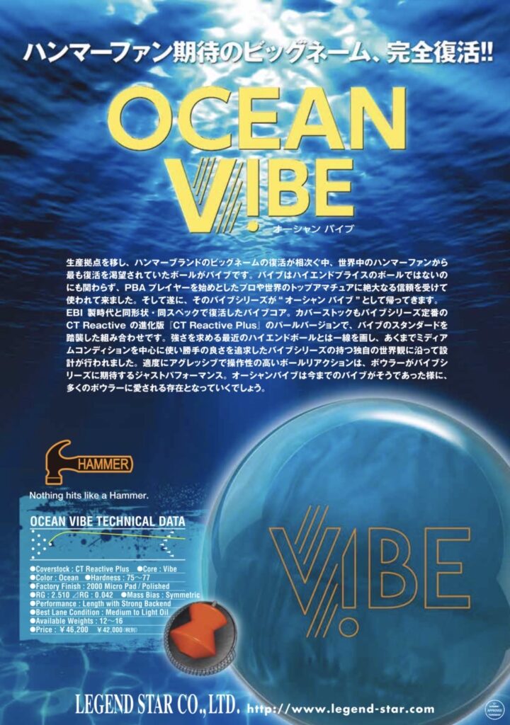 いやぁ……懐かしいですねぇ……エボナイトグループ(エボナイト、ハンマー、コロンビア300、トラックなど)がブランズウィックグループ(ブランズウィック、DV8、ラディカルなど)と吸収合併して以来初となる、ハンマーの超ロングセラーボール『バイブ』がレジェンドスターより堂々と復活します\(^o^)/ \(^o^)/