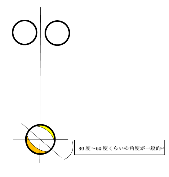 テープを貼る位置はボールをグリップした時の指紋の中心ラインとその反対側(指の背中側)に貼ります。グリップラインに対して垂直ではなく30度~60度くらいの角度が一般的です。