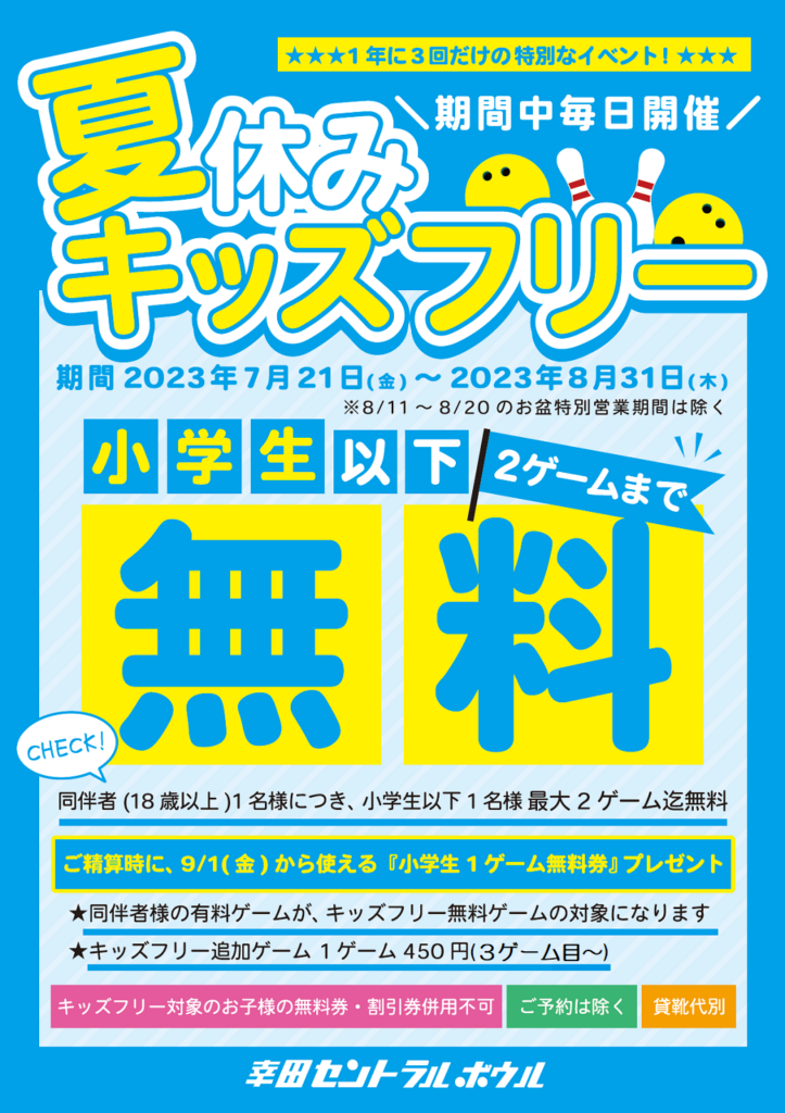 幸田セントラルボウルでは 同伴者様(18歳以上)1名につき、小学生までのお子様1名