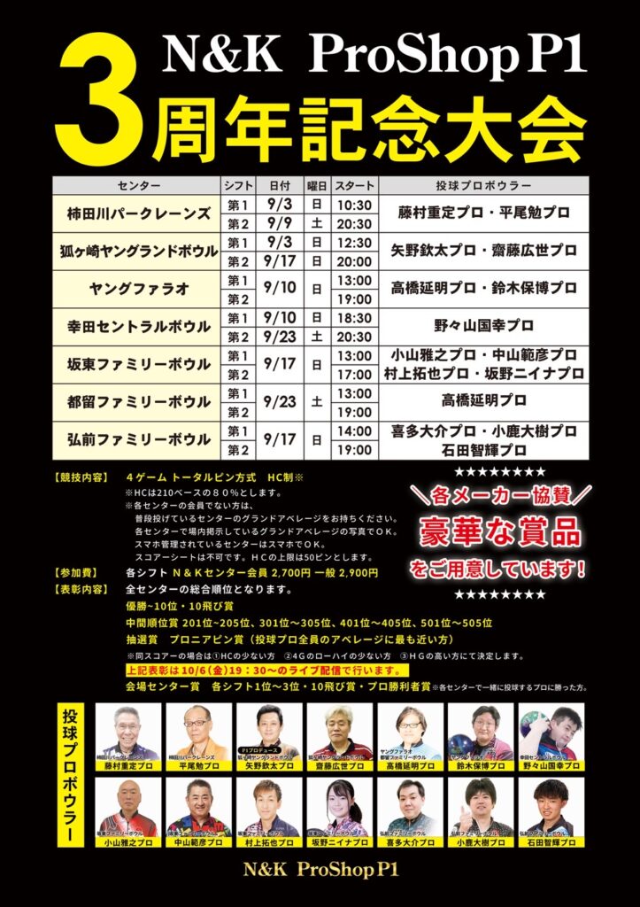 ちなみに各店、所属プロが一緒に投球し、プロ勝利者賞をご用意しておりますが…