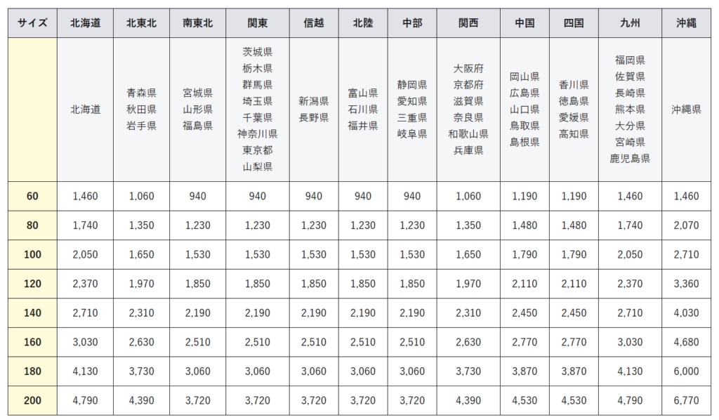 出荷元が茨城県からとなりますので、近場の関東でも3,060円、九州・北海道で4,130円、沖縄の場合には6,000円の送料がかかります。