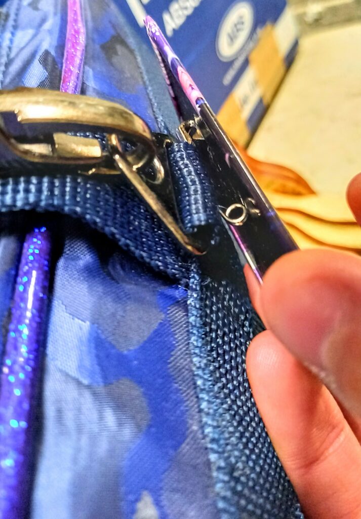 金具を留めるためにループした布の部分!何とも名状しがたい所ですが…